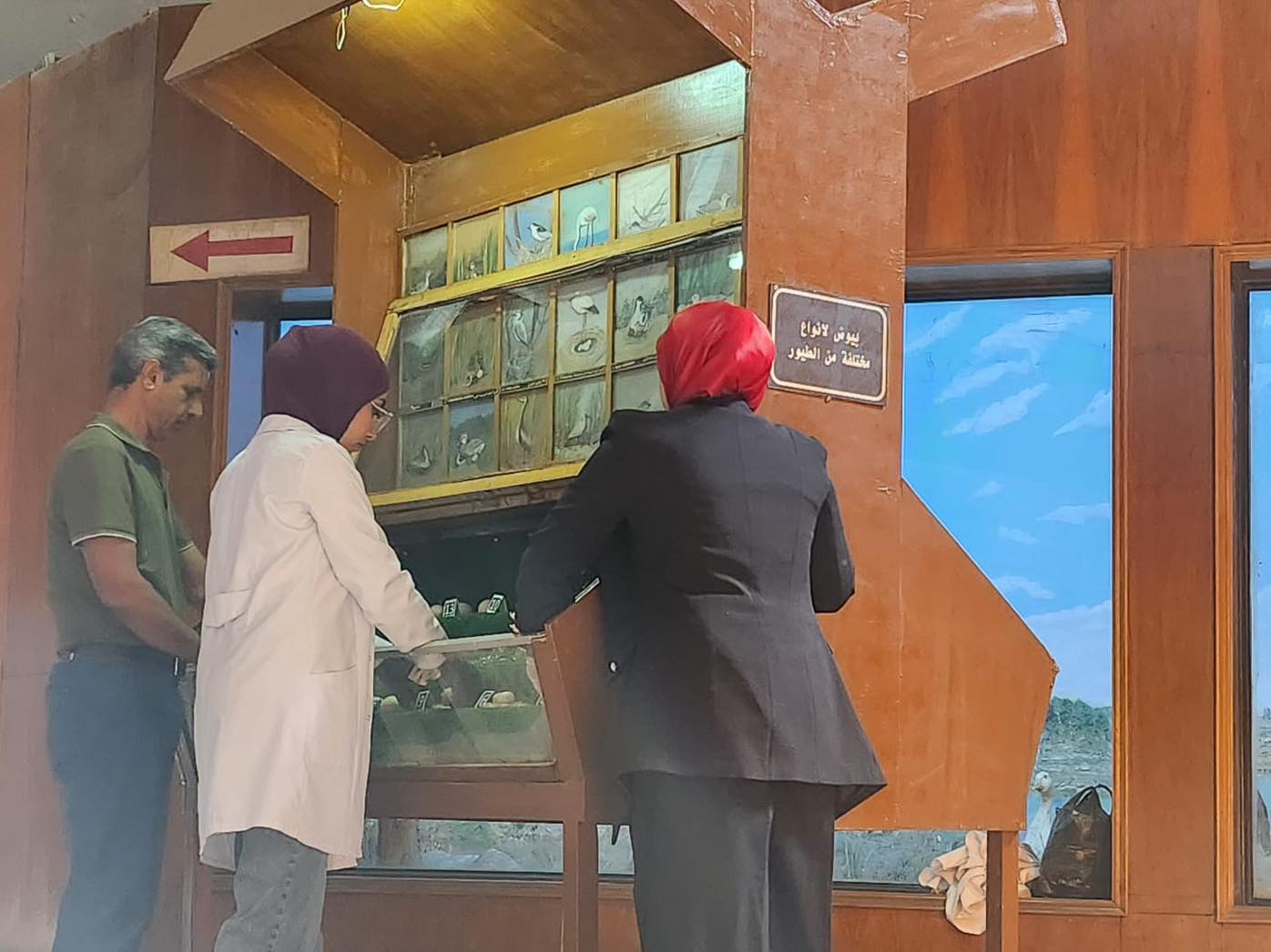 As part of the series of artistic and scientific activities, and with the support and guidance of the center’s director, Dr. Hanaa Hani Al-Saffar, and to preserve the models stored in the museum’s exhibition hall and maintain the egg tank, the Vertebrates Department, under the supervision of the department head, Professor Dr. Afkar Muslim Hadi, Assistant Lecturer Yasmin Sarmad Hassan, Agricultural Engineer Muhammad Salman, and Biologist Nour Ali Hassouni, organized today, Wednesday, October 29, 2024, the rearrangement and rehabilitation of some models in the special exhibition hall that contain types of bird eggs in different environments and their maintenance by adding touches that reflect artistic and scientific development and are considered among the most important artistic and scientific touches for the exhibition hall.